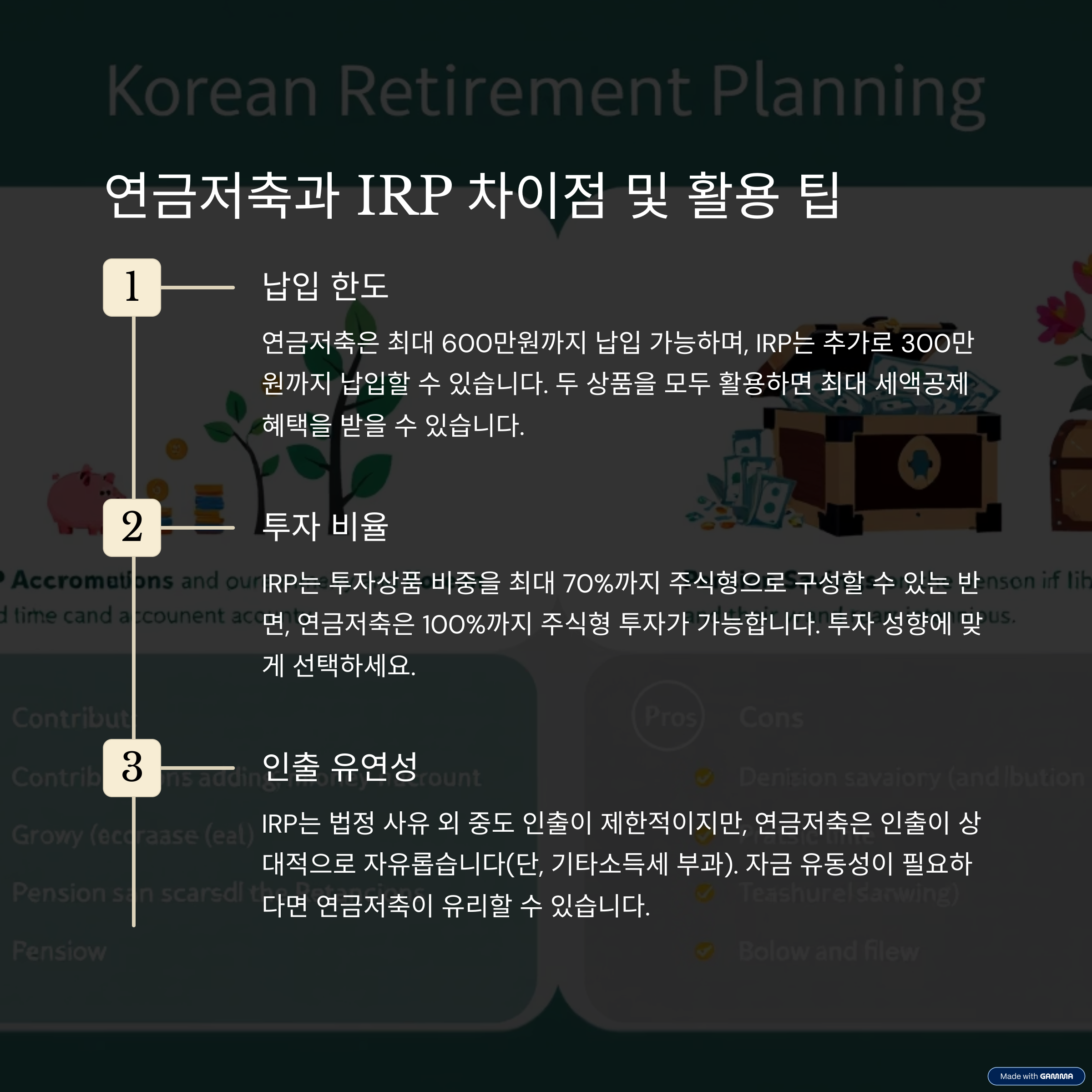 | 세액공제 한도 | IRP+연금저축 합산 900만원까지 공제 가능 |